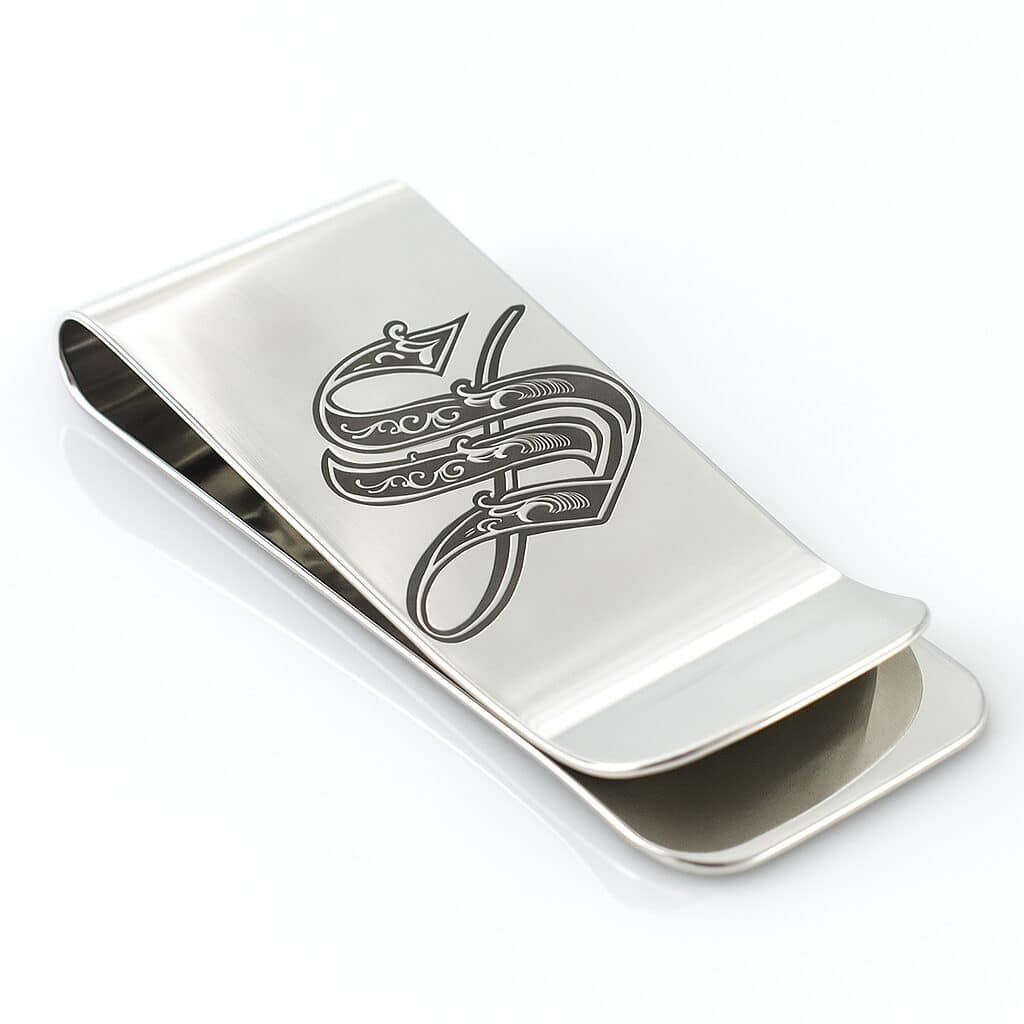 Лазерная гравировка на зажимах для денег.