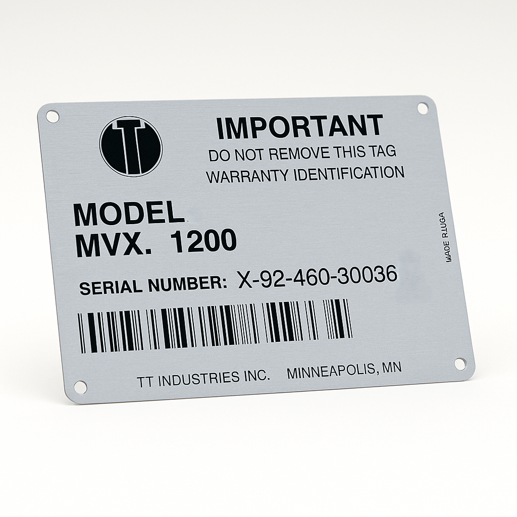 Лазерная гравировка на металлических табличках для оборудования, машин и техники