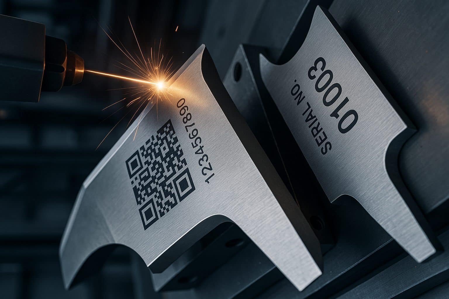 Лазерная гравировка на металлических деталях QR-кодов и серийных номеров