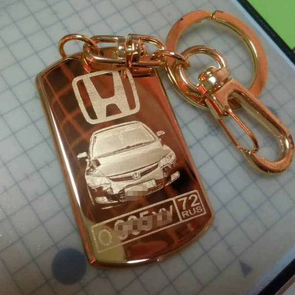 Лазерная гравировка на брелоках для ключей: с госномером и логотипом авто