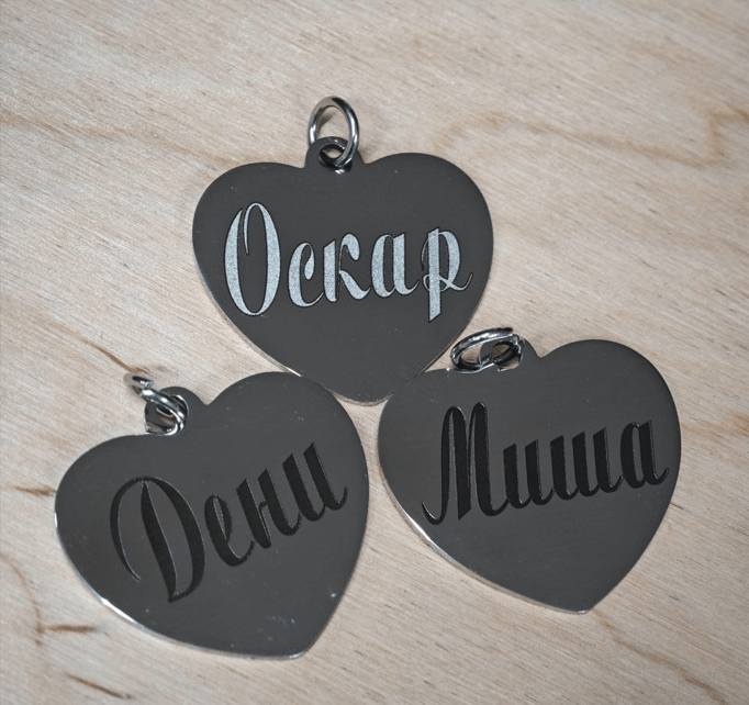 Лазерная гравировка на жетонах, кулонах и металлических аксессуарах